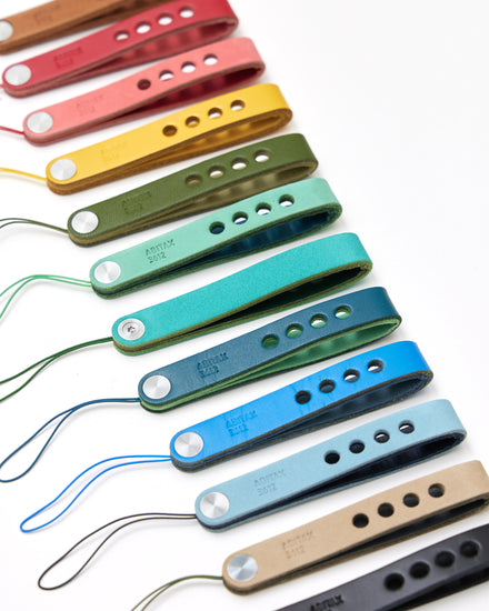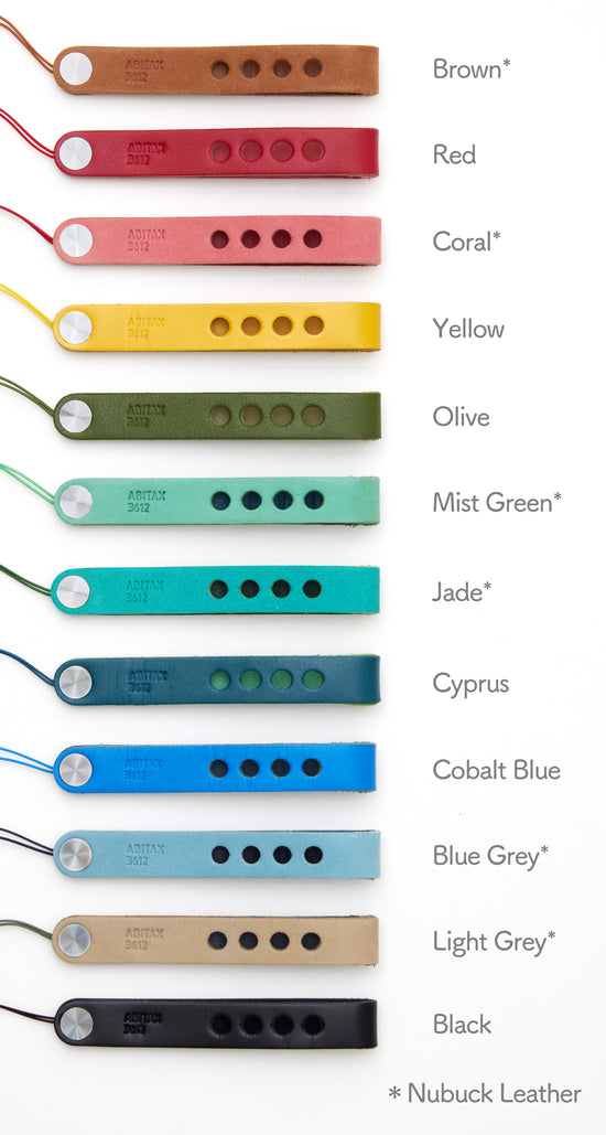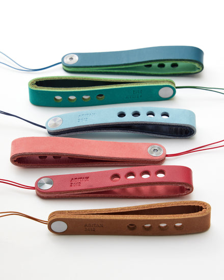 取付けひもは革と同色に染め、金具は精密切削加工を施したアルミ合金製とし、革以外のパーツのディテールにもこだわりました。